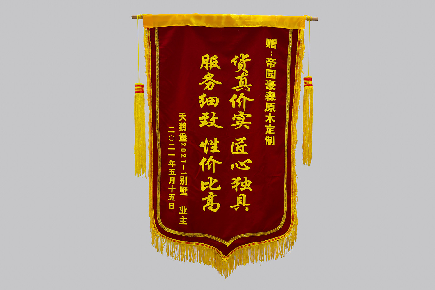 感谢天鹅堡2021-1别墅业主赠送旌旗:“货真价实、匠心独具;服务细致,性价比”感谢天鹅堡2021-1别墅业主赠送旌旗!货真价实、匠心独具;服务细致,性价比,这是对我们最大的肯定。2024-04-01 09:42:30查看详情