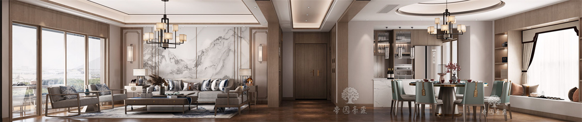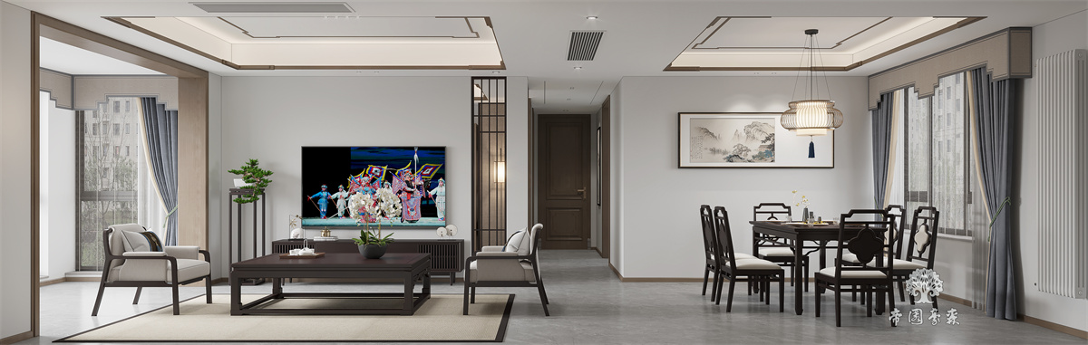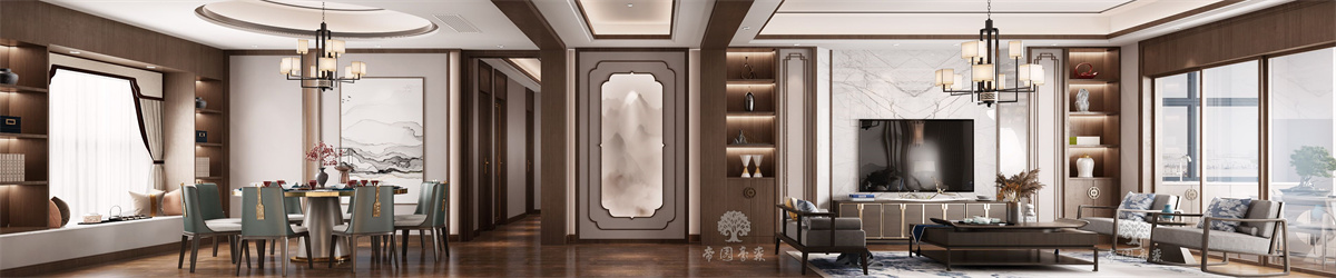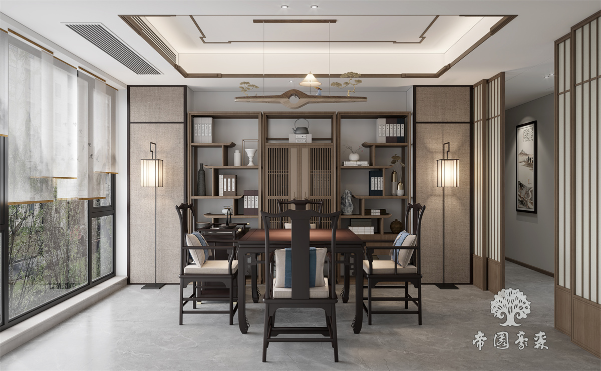 帝园豪森-全屋高定-效果图-现代中式--贴皮系列