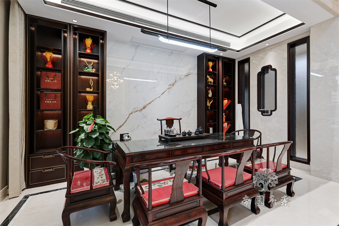 新中式风格是一种融合了传统中式元素与现代设计理念的家居风格。它既保留了中式风格的典雅与庄重,又融入了现代简约的线条与功能性。新中式风格通常采用对称布局,以木质家具为主,搭配一些传统的装饰元素,如屏风、字画、瓷器等。同时,它也会使用一些现代的材料和工艺,如玻璃、金属等,来增加空间的时尚感和舒适度。新中式风格适合喜欢传统文化,但又希望家居环境更加简洁、实用的人群。
